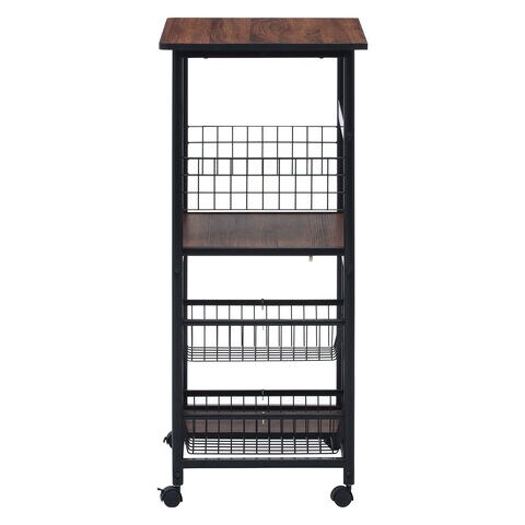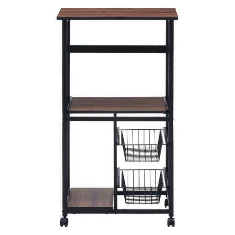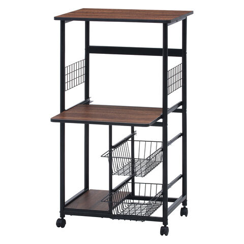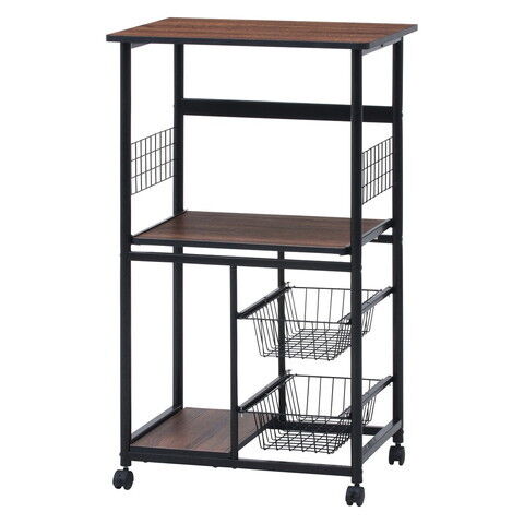 不二貿易 レンジワゴン(ブラック×ブラウン) コロコロ動くたっぷり収納キッチンワゴン 14638 【返品種別A】