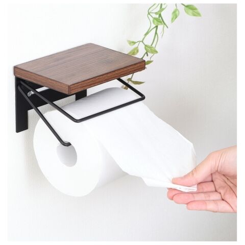 木目×ワイヤーのおしゃれなトイレットペーパーホルダー シングル