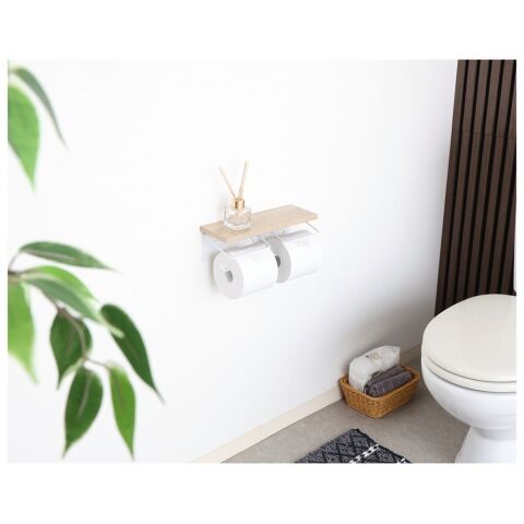 不二貿易 トイレットペーパーホルダー 2ロール(ナチュラル×ホワイト) 38995 【返品種別A】