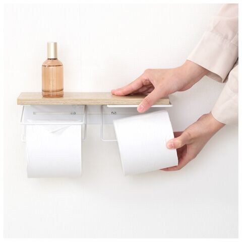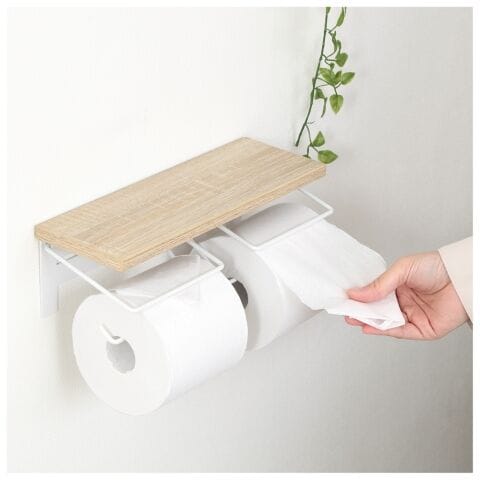 木目×ワイヤーのおしゃれなトイレットペーパーホルダー ダブル