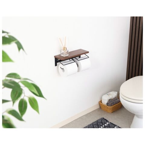 不二貿易 トイレットペーパーホルダー 2ロール(ブラウン×ブラック) 38996 【返品種別A】