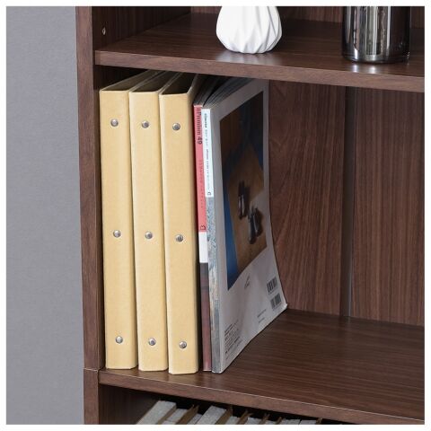 中央の固定棚を除く4枚の棚板は収納物に合わせて高さを調節できる便利な可動棚です。