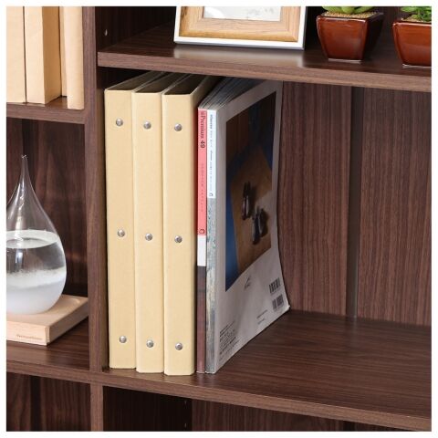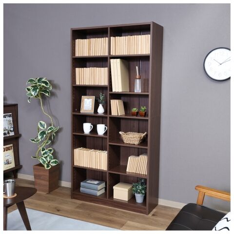 中央の固定棚を除く合計8枚の棚板は収納物に合わせて高さを調節できる便利な可動棚です。