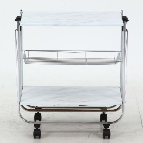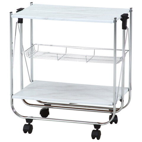 使うときだけで場所を取らない! 大理石柄の折りたたみワゴン