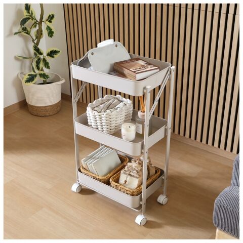 組み立てはキャスターをつけるだけ! たためるマルチワゴン3段