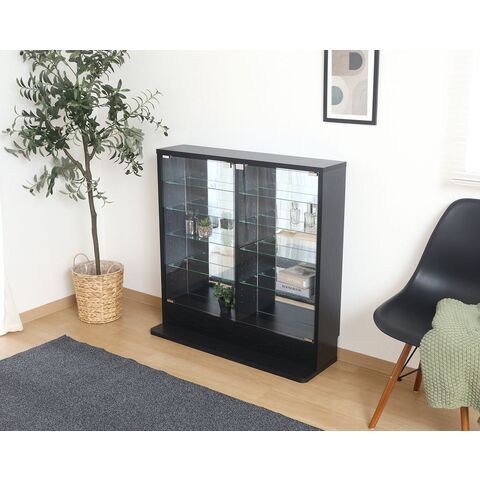 不二貿易 コレクションラック TOR ロータイプ 【背面ミラー付き】(ブラック) 57083 【返品種別A】