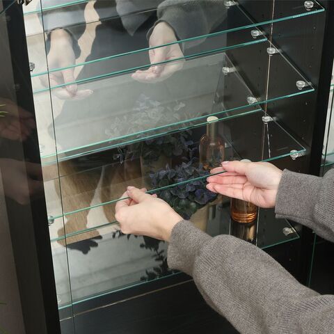 ガラス棚板は幅41×奥行14.5cm。取り外すこともできるので、自由にレイアウトを楽しめます。