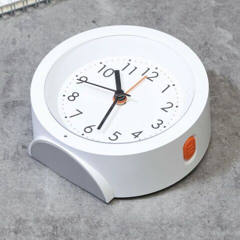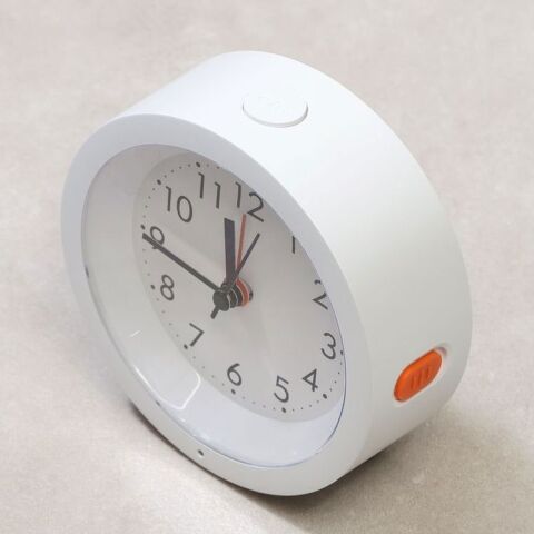 シンプルながら、アラーム針とアラームスイッチにオレンジのアクセント色を使った洗練されたデザインです。