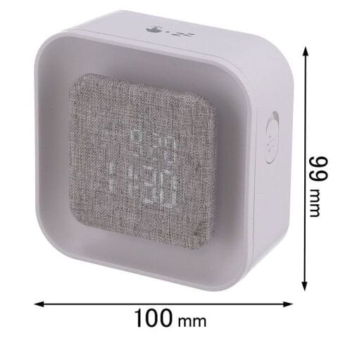 ファブリックのディスプレイが特徴のデザイン。デジタル時計に温かみとインテリア性をプラス。