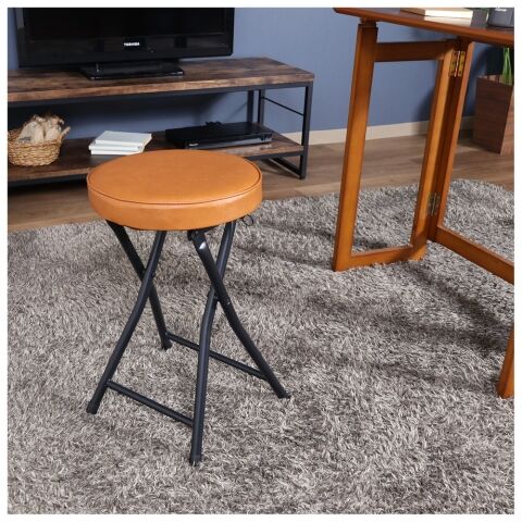 不二貿易 折りたたみスツール PU(ブラウン) 73621 【返品種別A】