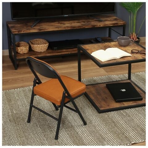 不二貿易 折りたたみチェア ロータイプ PU(ブラウン) 73625 【返品種別A】