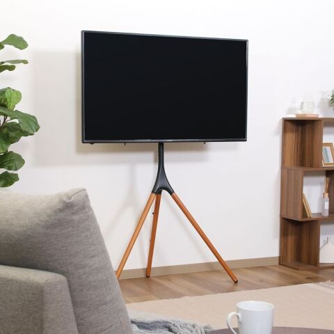 絵画を飾るようにテレビ配置。木製3脚TVスタンド