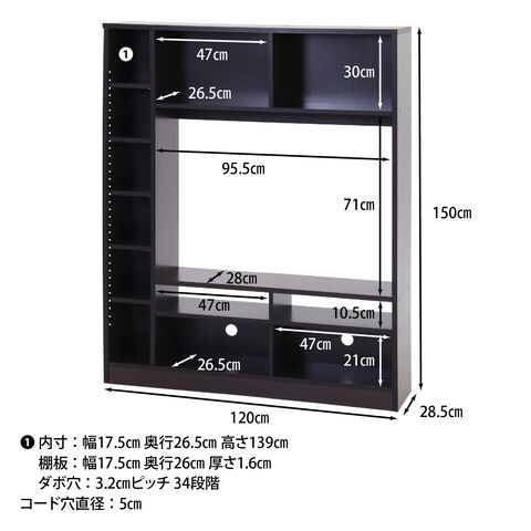 - 商品サイズ(mm) 全体:幅1200 × 奥行285 × 高さ1500
