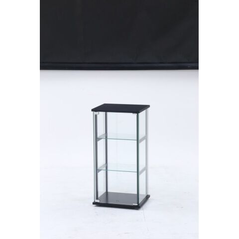 全体がブラックで統一されたソリッドなデザイン。側面もガラスなので、そこから見えるブラックフレームが、お気に入りのコレクションをより引き立ててくれます。また、ガラス板がガタつかないようブラックスポンジが付属されています。