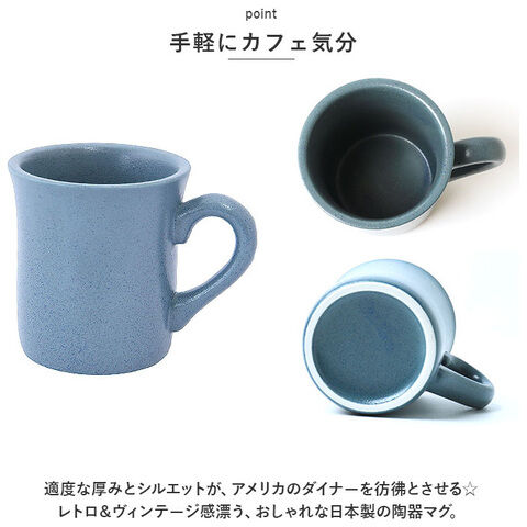 適度な厚みとシルエットが、アメリカのダイナーを彷彿とさせる☆レトロ&ヴィンテージ感漂う、おしゃれな日本製の陶器マグ。