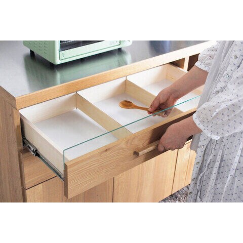 ◆引出の中段・下段は高さのある食器やビンなどが収納できます。