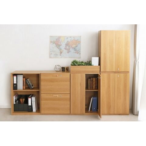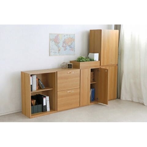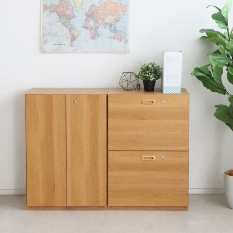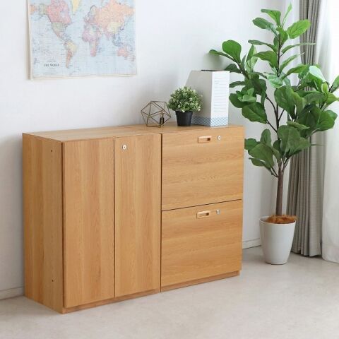 ナチュラルでトレンド感あるデザインの鍵付き収納、ホームオフィス、事務所等、幅広いシーンで個人、法人問わずお使いいただけます。
