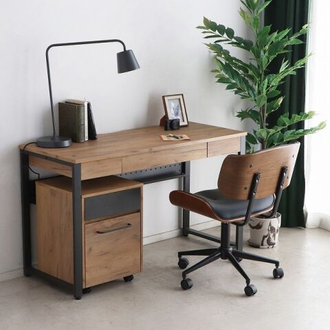 くすんだブラックのカラーの脚がおしゃれなデスク。