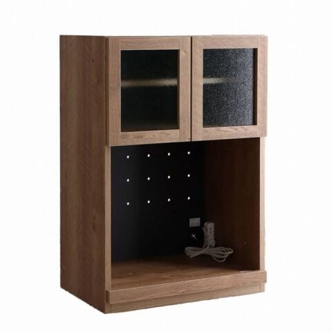 • 素材…天板:MDF(塗装なし)、本体:プリント化粧板、前板:強化紙化粧板、ガラス:4mmカスミガラス、取手:仙徳色スチール取っ手124kg