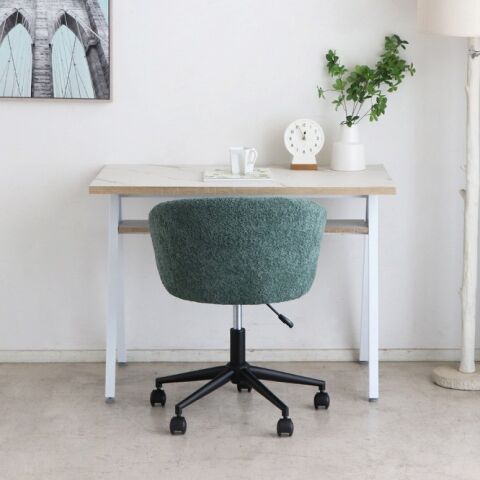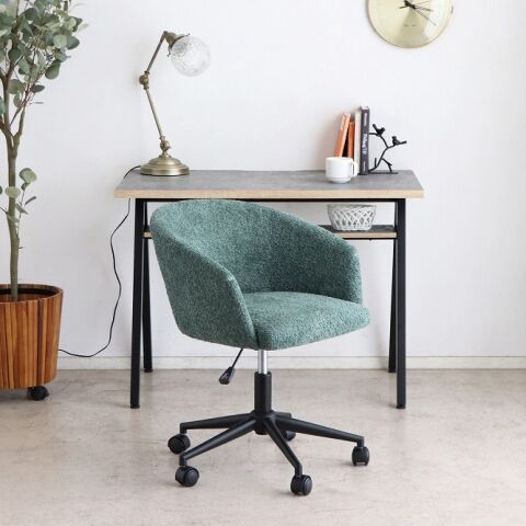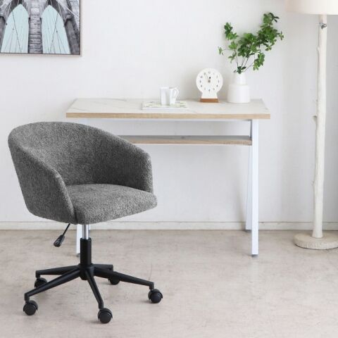 手触りの良いもこもことしたブークレ生地を使用したマルっとした見た目もかわいらしく、卵型で包み込まれるようなワークチェアです。