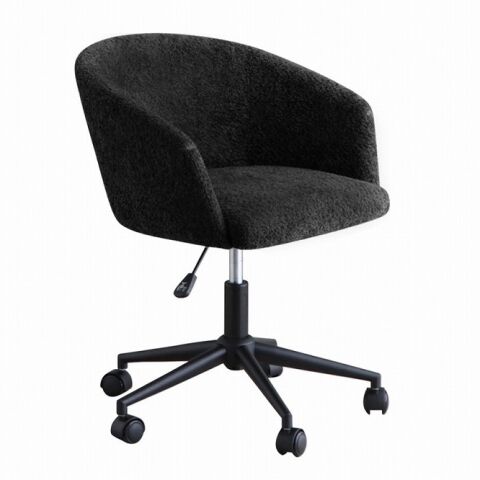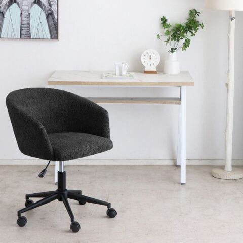 手触りの良いもこもことしたブークレ生地を使用したマルっとした見た目もかわいらしく、卵型で包み込まれるようなワークチェアです。