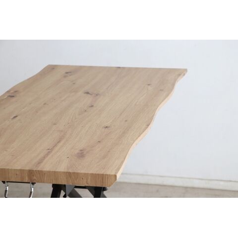 まるで本物の一枚板に見えるリアルシートを使った天板に、波打った小口がリアルで高見えするテーブルです。
