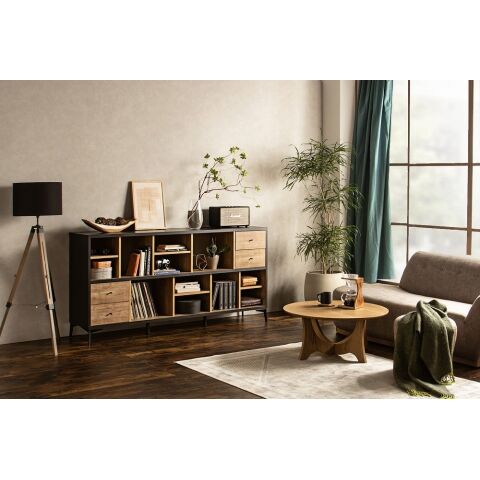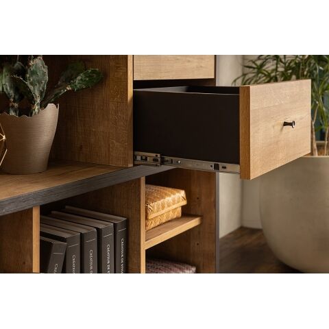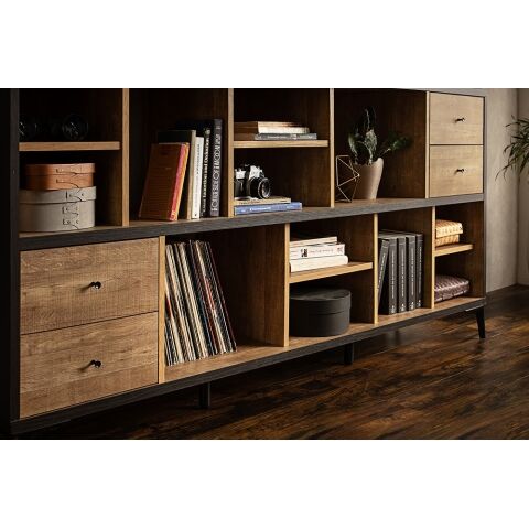 引出し、オープン収納できる箇所が多く、収納の仕方は無限大、横、縦バリエーションも豊富でスペースに合わせて設置できるアイテムです。