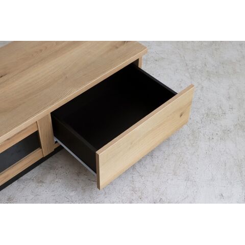 シャープなラインとフロート感のあるデザインが、空間に上質な抜け感を与えるローボード。