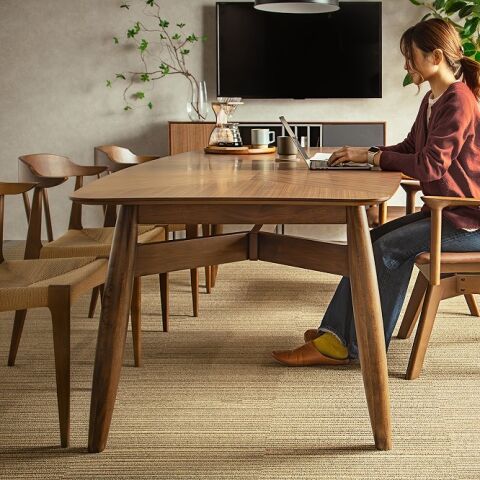 - 素材…天板:MDF+ウォルナット突板(ウレタン塗装)、脚部:ラバーウッド無垢(ラッカー塗装)