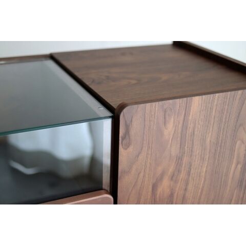 - 素材…本体 : 強化紙・プリント、前板:アルダー無垢(ウレタン塗装)・強化紙、天板ガラス:強化5mm透明ガラス、前板ガラス:強化4mm透明ガラス、脚 : スチール(粉体塗装)
