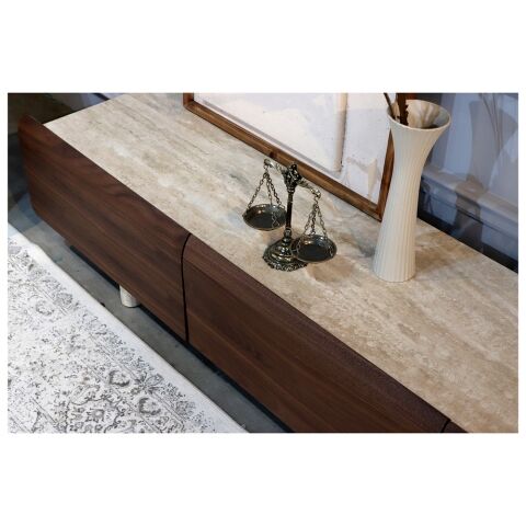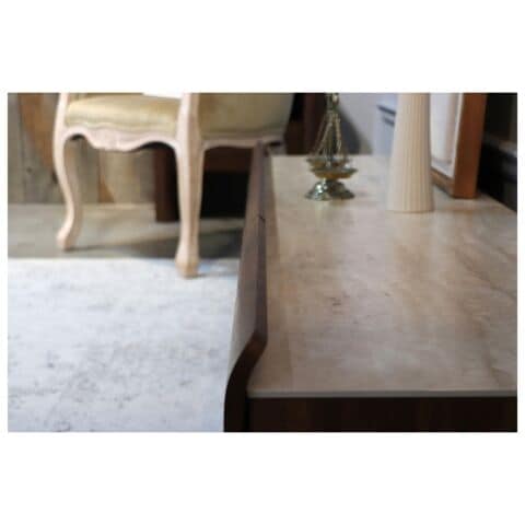 ウォールナット無垢材と、天然石を組み合わせた美しいデザイン