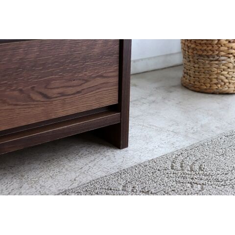 あえて違う木材カラーをグラデーションになるように設えた意匠性が一段と目を惹く大容量の収納チェスト。