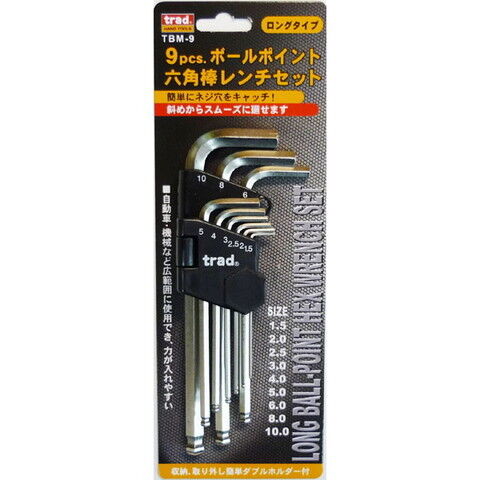 TRAD 9pcs ロングタイプ ボールポイント六角棒レンチセット (1.5、2.0、2.5、3.0、4.5、5.0、6.0、8.0、10.0mm) TBM-9 ボールポイントヘックスレンチセット #350109 【返品種別B】