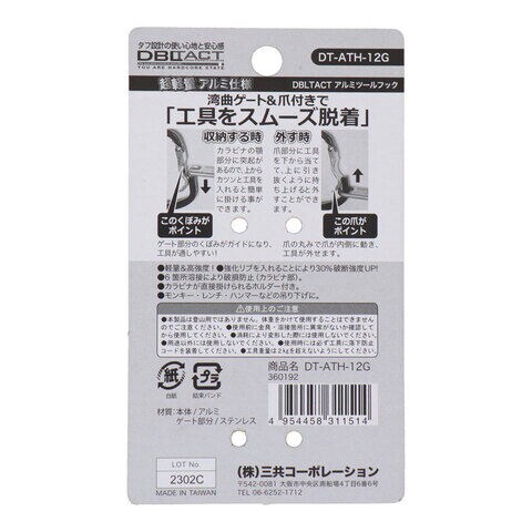 DBLTACT 軽量アルミツールフック 湾曲ゲート×爪付き(ガンメタ) DT-ATH-12G 【返品種別B】