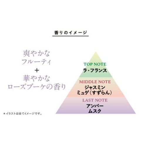 ■成分:水、ミネラルオイル、グリセリン、トリセテス-5リン酸、シクロメチコン、テトラオレイン酸ソルベス-30、トリイソステアリン、プロパンジオール、キャンデリラロウ、センチフォリアバラ花水、スクワラン、セタノール、トリ(カプリル/カプリン酸)グリセリル、(アクリル酸ヒドロキシエチル/アクリル酸メトキシエチル)コポリマー、ベヘントリモニウムメトサルフェート、PPG-4セテス-20、PPG-8セテス-20、セテス-10、BG、PG、エタノール、マロン酸ジエチルヘキシルシリンギリデン、フェノキシエタノール、メチルイソチアゾリノン、香料、赤227