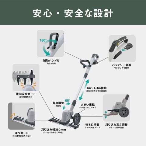 ・広い刈りで効率よく草刈り(刈り込み幅350mm)