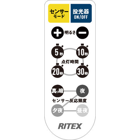 センサーモード、投光器モードへの切替やその他点灯設定をリモコンでおこなうことが可能です。