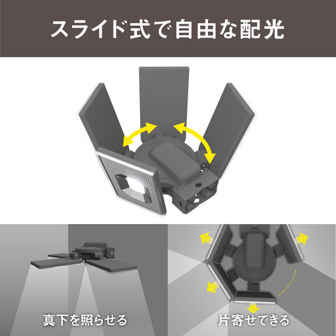 真下を照らしたり、ライトを片側に寄せて照らすことも自由自在。