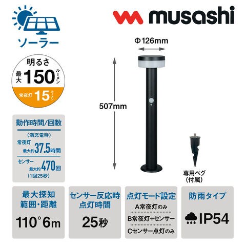 ムサシ ガーデンソーラーセンサーライト2W丸形 ブラック musashi GL-S100BK 【返品種別A】