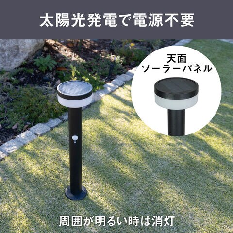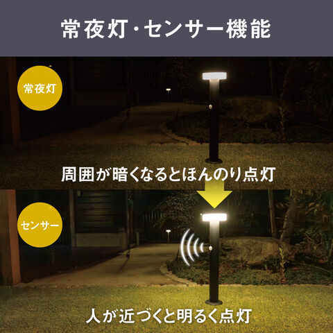 周囲が暗くなると自動点灯し、人が近づくとさらに明るく点灯するセンサー機能付き。