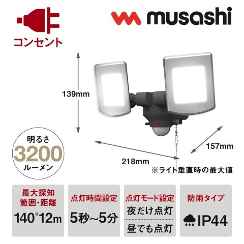 ムサシ AC式 LEDセンサーライト(14W×2灯) musashi LED-AC228 【返品種別A】