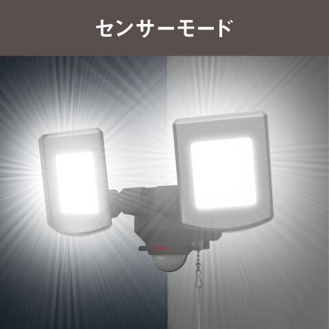 センサーモード、ほんのり常夜灯モード、投光器モード、フラッシュ発光(点滅)モードの4つの点灯モードを切り替え可能。