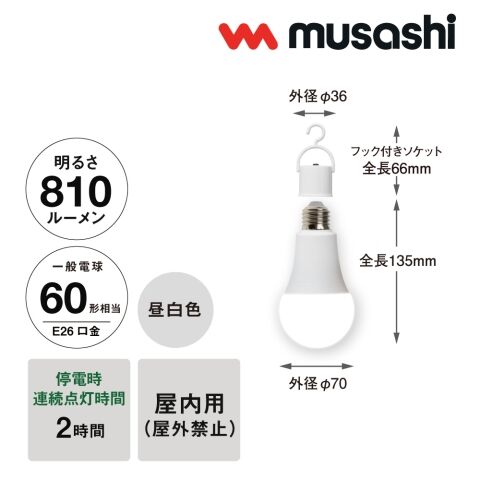 ムサシ 防災LED電球(昼白色) 810ルーメン/550ルーメン 2000mAh musashi R-LED60N 【返品種別A】
