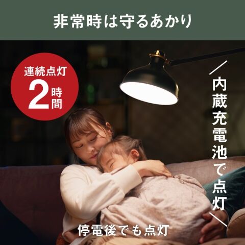 点灯中に災害などで停電が発生しても、停電を感知して内蔵充電池で自動点灯します。
