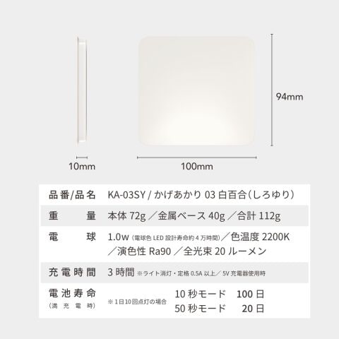 ムサシ USB充電式 屋内用LEDナイトライト musashi かげあかり03 白百合(しろゆり) KA-03SY 【返品種別A】