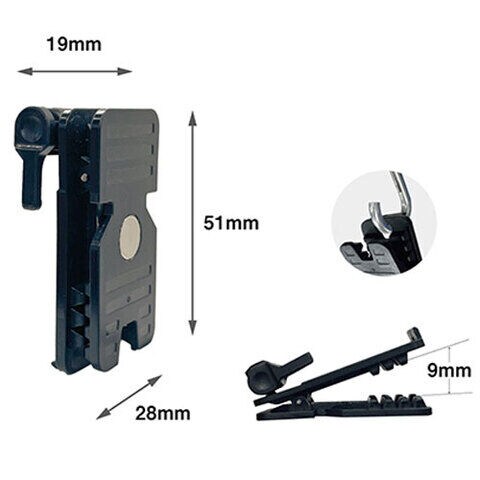 使い方はさまざま。衣服や帽子にはさむ、マグネットで取り付ける、床やテーブルに置く、フック穴に引っ掛ける、ベルトホルダーに取り付ける。