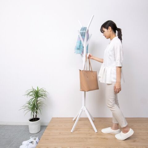 ◆玄関、リビング、寝室など場所を選ばすお使いいただけるポールハンガー。