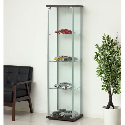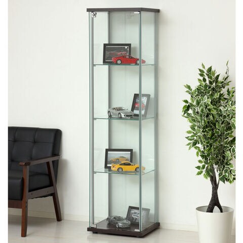 クロシオ ガラスショーケース鍵付 4段 (幅42.5×奥行36.5×高さ163.5cm・ブラウン) コレクションケース 23570 【返品種別A】
