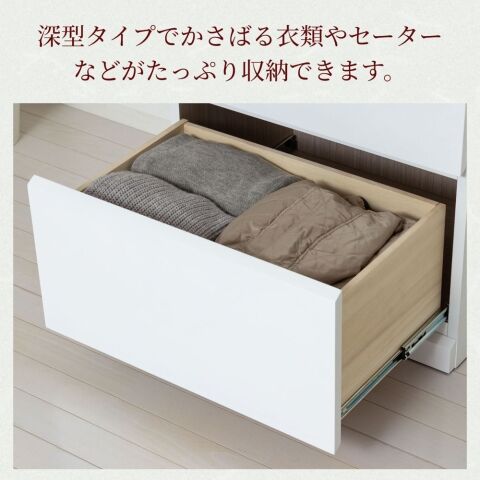 深型の引出しはセーターなどかさばる衣類も収納できます。