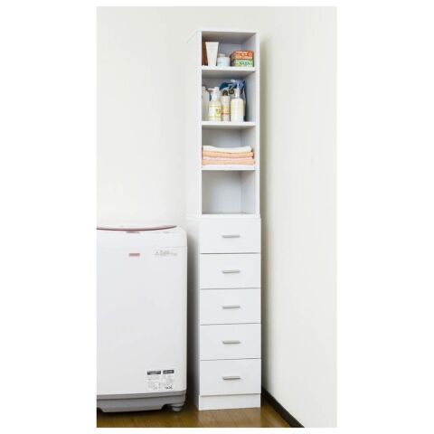 ラック内寸(2ヶ所):幅26×奥行27.5×高さ41.5cm - 棚板:可動棚(3.2cmピッチ、7ヶ所移動)×2、固定棚(中央)×1、タオル用棚×1